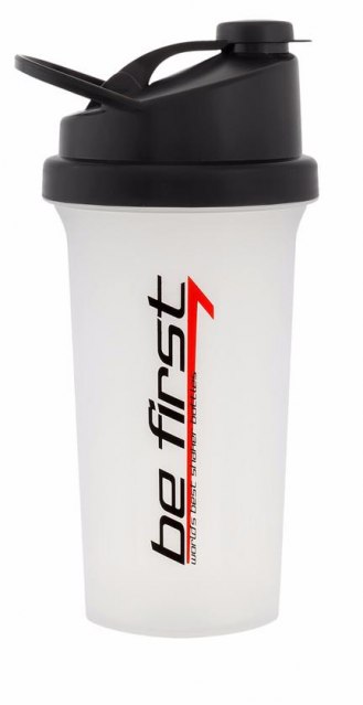 Компания Be First предлагает новый замечательный спортивный шейкер с держателем. Эта классическая модель сделана из прозрачного пищевого пластика (не содержащего BPA) – Вы всегда сможете контролировать процесс смешивания. Все варианты данной модели имеют прозрачный корпус и отличаются цветом крышки. Шейкер универсального объема – 700 мл – прекрасно подойдет как для протеина, так и для гейнера. Мелкая сетка облегчает процесс смешивания и делает его более быстрым и эффективным. На корпусе нанесена мерная шкала, чтобы Вы всегда точно могли отмерить количество наливаемой жидкости. На крышке имеется удобный держатель, позволяющий носить шейкер, повесить его куда угодно, или прицепить что-то к шейкеру (брелок, ключ, карточку и т.п.). Такое полезное дополнение позволяет безгранично расширить возможности применения шейкера.